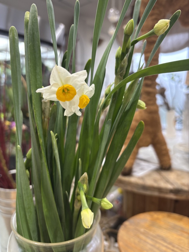 黄色のスイセン…花言葉は「もう一度愛してほしい」「私のもとへ帰って」「愛に応えて」です。こちらもギリシャ神話が由来です。