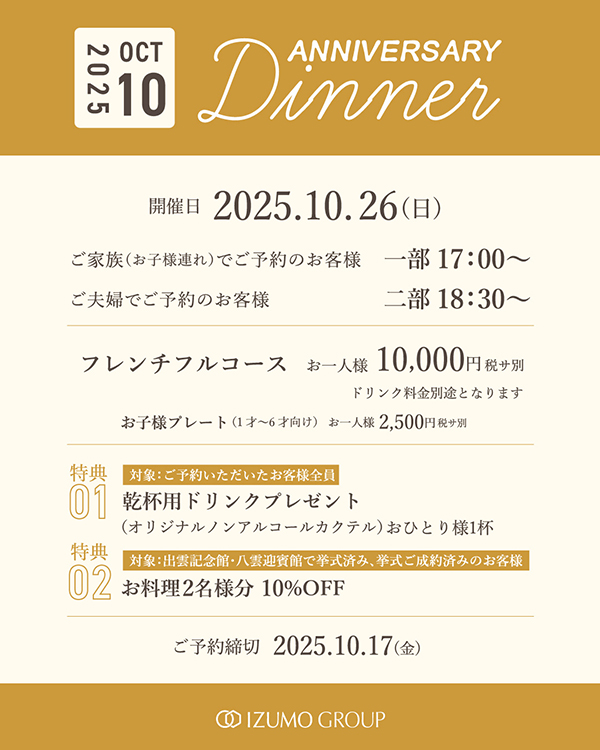 10月のAnniversary Dinnerの日程を公開いたしました✨