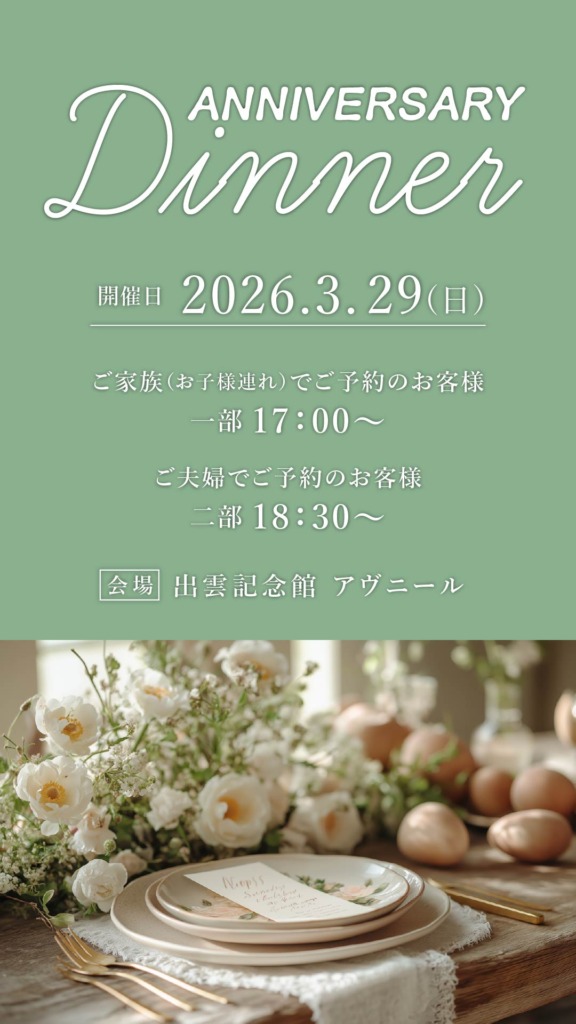 3月のAnniversary Dinnerの日程を公開いたしました✨