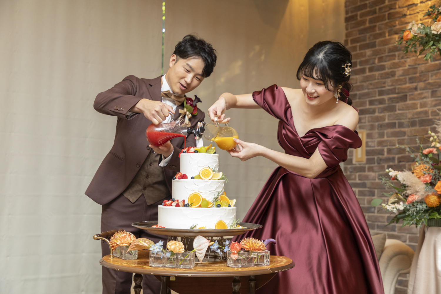 装花やコーディネート、ウェディングケーキなどいたるところにおふたりの溢れるセンスとこだわりを感じる素敵なご結婚式でした