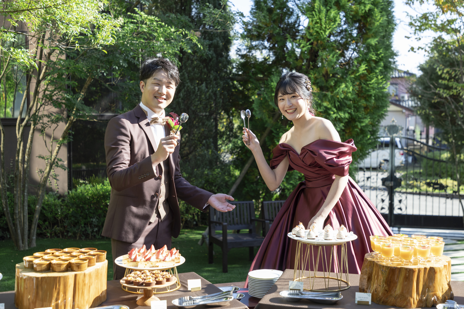 結婚式当日は晴天だったこともあり ガーデンで黒ひげ危機一髪やデザートブュッフェも出来ました