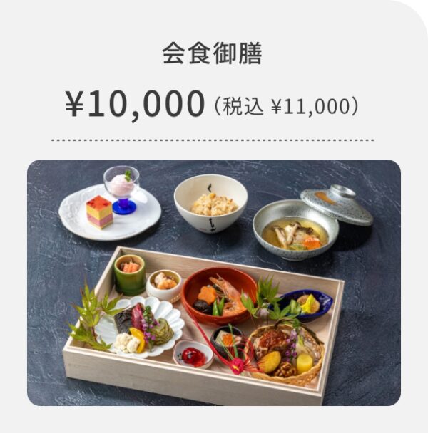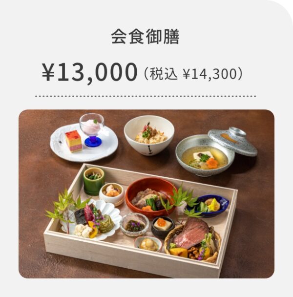 ※ 会食に関わる料理、ドリンク、会場費等の項目において10%のサービス料を頂戴しております