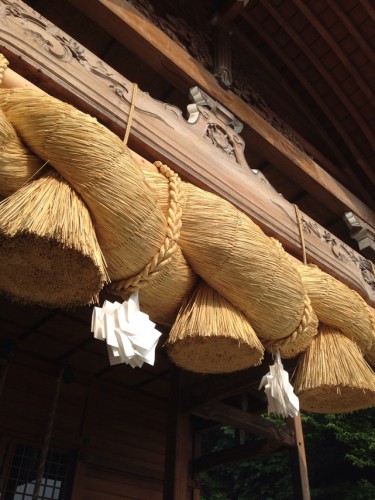 神殿の前に立つと、ひときわ目を引くのがしめ縄ですね。