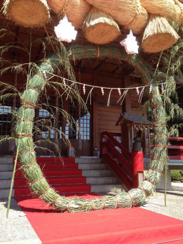 茅の輪くぐりとは、神殿の前に備え付けられた茅(かや)で