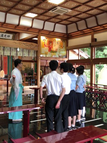 前回5月に来られた際には、神社の仕事についてお話させていただきましたが、今回は神社で働く人について、様々な質問にお答えさせていただきました。