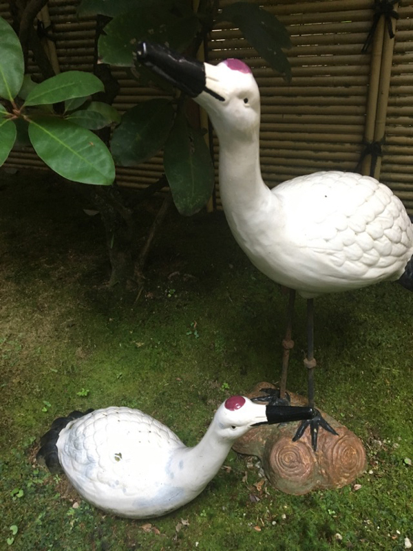 本殿への渡り廊下から見える中庭に、鶴の像があります。