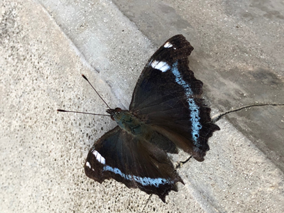 瑠璃色の羽が綺麗なこの蝶はルリタテハという蝶のようです。