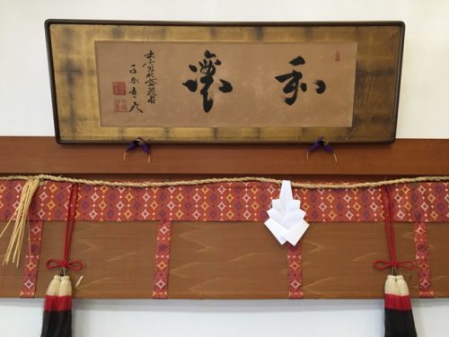 (出雲大社福井分院神殿に掲げられる「和譲」の書)